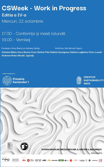 Asociația culturală NeoArt România și Galeria Galateca anunță deschiderea oficială a CSWeek – Săptămâna Sustenabilității Creative, ediția a IV-a, un proiect cultural și educațional dedicat sustenabilității prin artă și inovație, cu tema Comunitate și Sustenabilitate. Publicul este invitat în lumea creativității verzi și a artei contemporane în intervalul 22 octombrie - 15 noiembrie, CSWeek este un proiect co-finanțat de Primăria Sectorului 1.